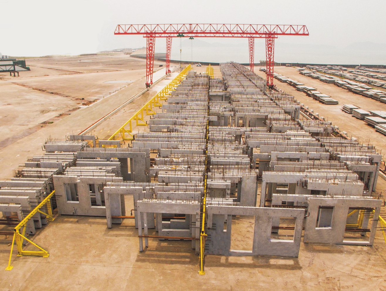 公司位于溫嶺東海之濱,松門鎮(zhèn)龍擔(dān)嶼裝配式建筑工業(yè)化科技產(chǎn)業(yè)園區(qū)內(nèi)。園區(qū)總占地面積700余畝,其中裝配式PC構(gòu)件生產(chǎn)占地200余畝,擁有30000㎡工業(yè)廠房和150畝構(gòu)件堆場,以及25000㎡的辦公、住宿、食堂、娛樂場所,投入國內(nèi)先進(jìn)的自動化環(huán)形流水生產(chǎn)線1條,固定模臺生產(chǎn)線4條,規(guī)劃年產(chǎn)預(yù)制構(gòu)件約10萬立方砼,可生產(chǎn)疊合樓板、樓梯、內(nèi)外墻板、梁柱、陽臺、空調(diào)板等不同類型的構(gòu)件。